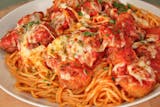 Juicy Succulent shrimp simmered in a spicy marinara sauce served over linguine.
