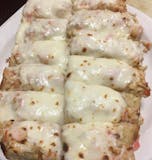 Toasted garlic bread topped with crab and mozzarella.