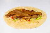 Homemade seitan gyro seasoned with herbs. Served with lettuce, onions, tomatoes, white sauce. On the side, chips, hot sauce and your choice of sauce. Add sauces for an additional charge.