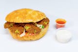 Falafel is a round or patty shaped fritter made with chickpeas or broad beans (fav beans) that are ground with spices and herbs. Served with your choice of sauce. Add sauces for an additional charge.