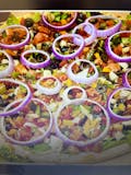 Mixed greens with garden vegetables. Served with (1) 4oz balsamic and (1) 4oz house dressings.