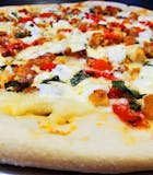 Fried Chicken, Roasted Peppers, Fresh Basil & Fresh Mozzarella (no sauce)