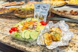 Lettuce, red onions, cucumbers, eggs, tomatoes, and green peppers. Supersized for your party.