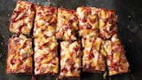 Pizza sauce, premium mozzarella, ham (when in stock), bacon & pineapple. 270-390 cal. / slice