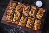 "Detroit-style dough freshly baked with premium mozzarella, topped with butter, garlic & romano. Served with your choice of dipping sauce. (12 pcs.) 140 cal. / pc."