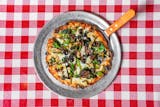 Mushrooms, artichoke, spinach, cherry peppers, provolone, onions, tomato, black olives.