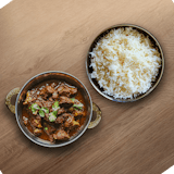 Tender Goat simmered and cooked in a blend of garlic, ginger, and onions with a free portion of rice