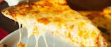 Fresh garlic, mozzarella cheese, fresh mozzarella, plum tomato sauce, oregano & parmesan.