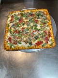 Fresh garlic, crispy chicken, mozzarella cheese, plum tomato sauce, oregano & parmesan.
