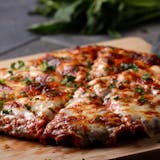 Spicy pizza sauce, jalapenos, onion, green peppers, black olives, tomatoes, broccoli spinach, cilantro, homemade masala and pizza cheese.