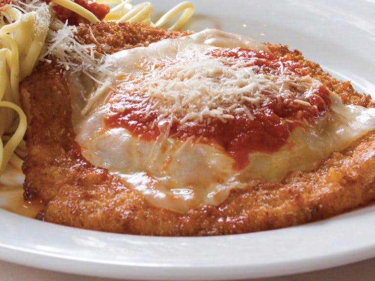 Topped with prosciutto and Swiss, served with Marsala wine or marinara sauce.