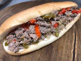 Sliced ribeye steak, green peppers, onions, mozzarella cheese, and American cheese inside of our fresh, hand-tossed dough. Served with a side of sauce.