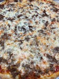 Pepperoni, sausage, mushrooms, green peppers, onions, sauce and mozzarella.