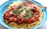 Spaghetti topped with 3 pieces of our homemade meatballs.