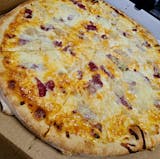 Crust topped with Thousand Island dressing, Swiss, Mozzarella, Corned Beef, and Sauerkraut