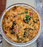 Crabmeat in a creamy parmesan cheese sauce. Seasoned with cayenne pepper, served with egg fettuccine