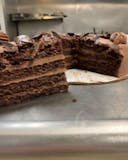 Layered chocolate cake with peanut butter mousse and fudge topping