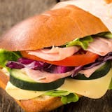 Salad greens, tomato wedges, hot & sweet peppers, green olives, salami, ham, provolone & crouton.