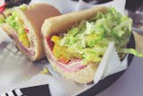 Lettuce, tomatoes, onions, oil, vinegar or may upon request. Please order 4 hours ahead.