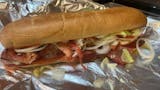 Ham, capicola, salami, sandwich pepperoni, provolone, and mozzarella cheese topped with lettuce, tomato, onions, and our own garlic Italian dressing.