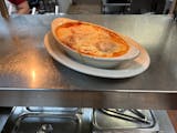 Baked in a red sauce and topped with mozzarella cheese.