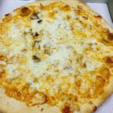 A light garlic sauce pie topped Mozzarella cheese, and parmesan