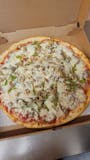 Red or white. Mozzarella, grilled chicken green peppers, onions & mushrooms.