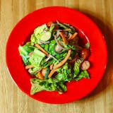Crisp lettuce, cherry tomatoes, cucumbers, red onions, carrots, and balsamic vinaigrette