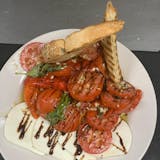 Topped with fresh tomatoes, basil, garlic, and mozzarella cheese.