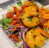 Grilled shrimp with pasta in Alfredo sauce. Giovani’s favorites.