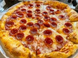 Garlic crust, pepperoni, sausage, fresh mushroom, Spanish onions, bell peppers, sweet peppers, and anchovies.