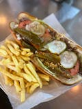 Filled with marinated grilled 16 oz ground beef, mozzarella cheese, sauce, and a choice of green peppers and onions.