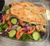 Served over an arugula salad, feta cheese with balsamic vinaigrette, complete.