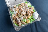 Fresh chicken, Romaine lettuce, croutons, fresh grated Parmesan cheese, egg, and Caesar dressing.