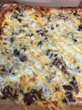Esposito’s porchetta thinly sliced pork on top of our crunchy sicilian pizza topped with mozzarella and sharp provolone with you choice of one topping.