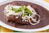 Two baked tortillas filled with choice of chicken or seitan and cheese topped with bean puree, sour cream and queso fresco.