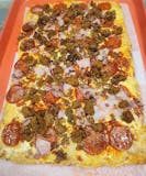 Available in square or round, pepperoni ,sausage, ham, bacon, meatballs.