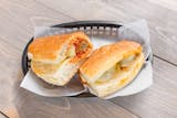 A classic snack, our garlic knots are strips of pizza dough tied in a knot, baked, and then topped with melted butter, garlic, and parsley. With cheese and sauce.