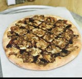 Grilled chicken, pesto sauce, garlic, olive oil and mozzarella.