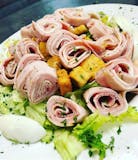 Premium ham, provolone, salami, pepperoni, tomato, red onions, olives, sweet and hot peppers over iceberg.