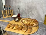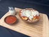 Olive Oil's pizza dough, coated Olive Oil's garlic butter sauce (always made with real Grade AA butter and olive oil), topped with our mozzarella and provolone blend, sprinkled with parmesan cheese. Served with marinara and ranch.