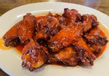 Breaded chicken, BBQ sauce, cheddar cheese, mozzarella cheese.