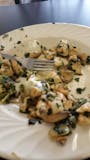 Sauteed onions, mushrooms, ham, ground beef, peas, in a pink sauce over rigatoni.