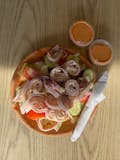Served with mozzarella sticks, onion rings, wings, perogies, chicken fingers with french fries and your choice of BBQ, hot, marinara, or sour cream sauce on the side.