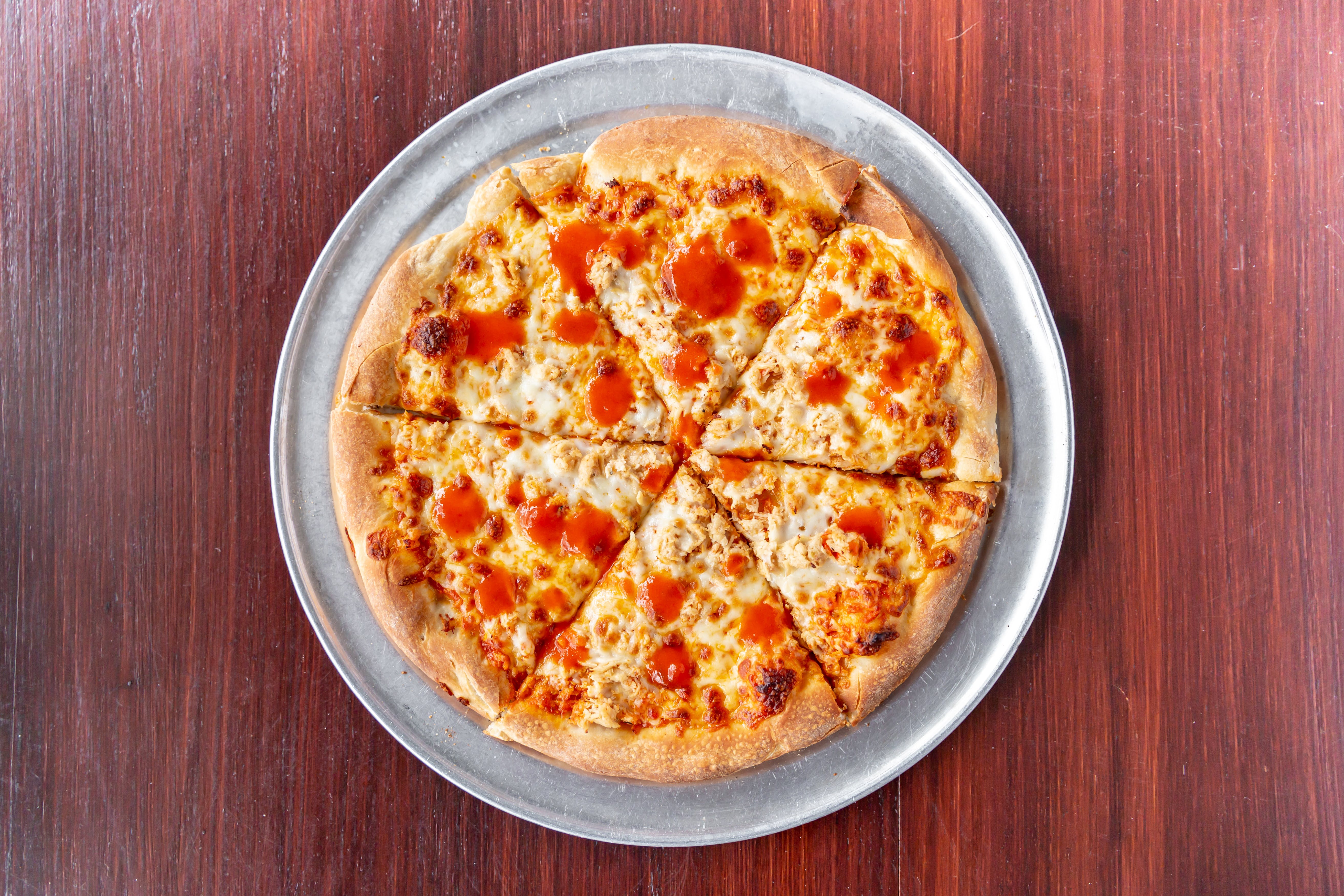 Crispy chicken, buffalo sauce, mozzarella - cheddar blend.