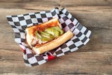 Classic Vienna beef hot dog served Chicago style on a poppy seed bun with mustard, onions, green Chicago relish, tomato, dill pickle, celery salt and sport peppers. Our dogs are rated NK - 17. No ketchup over 17.