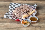 Per pound. Beef, gravy, your choice of hot, mild or sweet peppers and Italian bread. Makes four sandwiches per pound. Add cheese or multiple pepper types.