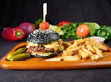 Fresh home-made bun, fresh double beef patties, lettuce, tomato, onion, american cheese.