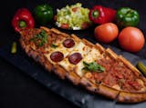 Blended chopped meat, vegetables, sucuk & mozzarella cheese.