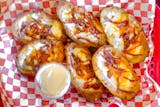 Topped with bacon, cheddar, and mozzarella cheese. Served with a side of sour cream.